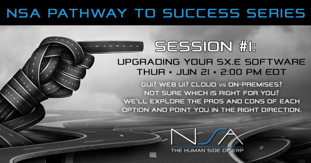There is no one right answer; each distributor needs to carefully weigh and evaluate what is best for their unique business. The decisions you make will have long term influences on your organization so we’ll help you explore the pros and cons of each option. The NSA team has successfully guided, trained, converted and implemented upgrades to SX.e for decades. We’ll do the same for you and implement your unique solution with the least disruption to your business as possible.